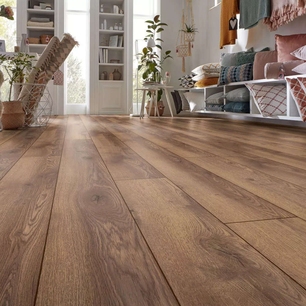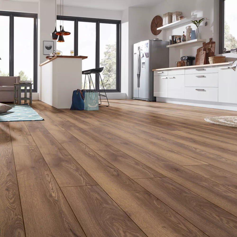 Ламинированное напольное покрытие Kronotex Mammut D 4726 Дуб горный коричневый 4V фаска, структура натурального дерева, фактура - Дуб, блеск поверхности - полуглянцевый. Можно купить на сайте в Москве по низкой цене. Этот водостойкий продукт 33 класса стойкости отлично впишется в любой дизайн квартиры или небольшого офисного помещения может использоваться для помещений с высокой влажностью. Оплата: наличный и безналичный расчёт, возможна покупка в кредит. Доставка: Москва, Санкт-Петербург, другие города России.